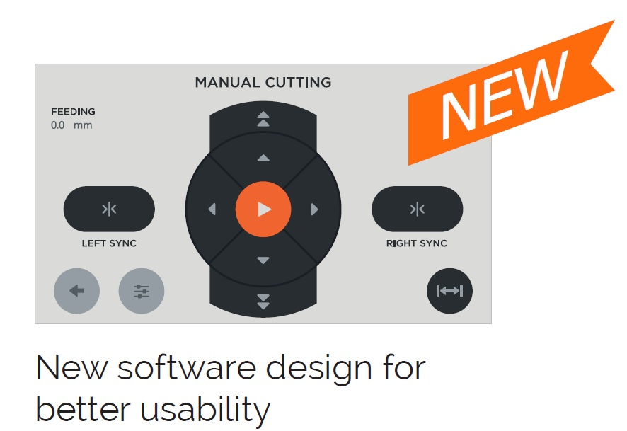 Kombinované horizontální a vertikální řezání, pro rychlé formátování potištěných i nepotištěných rolí do šíře 160 cm a tloušťky 1,2mm. Extrémně vysoká přesnost je zajištěna díky automatické ovládání EDGE, které čte podélně natištěnou ořezovou čáru po celé délce role. Díky unikátnímu uchycení materiálu je pak stroj schopen provádět korekci návinu role. Vysoce výkonné nože dokáží zpracovat roli o délce 50 metr za 3 minuty. Má intuitivní nastavení parametrů díky uživatelsky přívětivému softwaru.