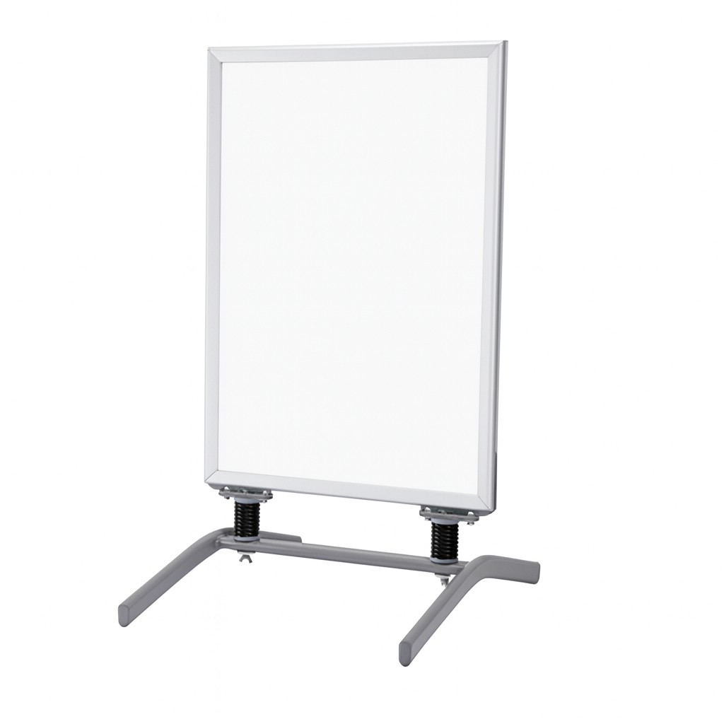 Venkovní stojan na plakáty s ocelovou základnou je profesionální exteriérový reklamní poutač určený pro venkovní prostředí. Díky těžké ocelové nebo železné základně stojí stabilně i při větru a nevyžaduje žádné plnění vodou či pískem. Dvoustranný klap rám umožňuje rychlou a jednoduchou výměnu plakátů, takže je stojan ideální pro každodenní akční nabídky, navigaci a reklamní sdělení. Konstrukce je vyrobená z odolných materiálů s protikorozní úpravou, takže je vhodná pro celoroční použití před provozovnami nebo v rušném veřejném prostoru.