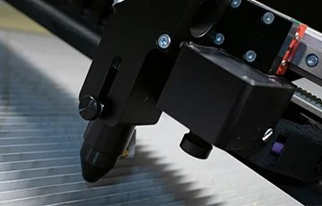 Laser řeže, zatímco kamera snímá a posuvník zároveň podává další část materiálu.