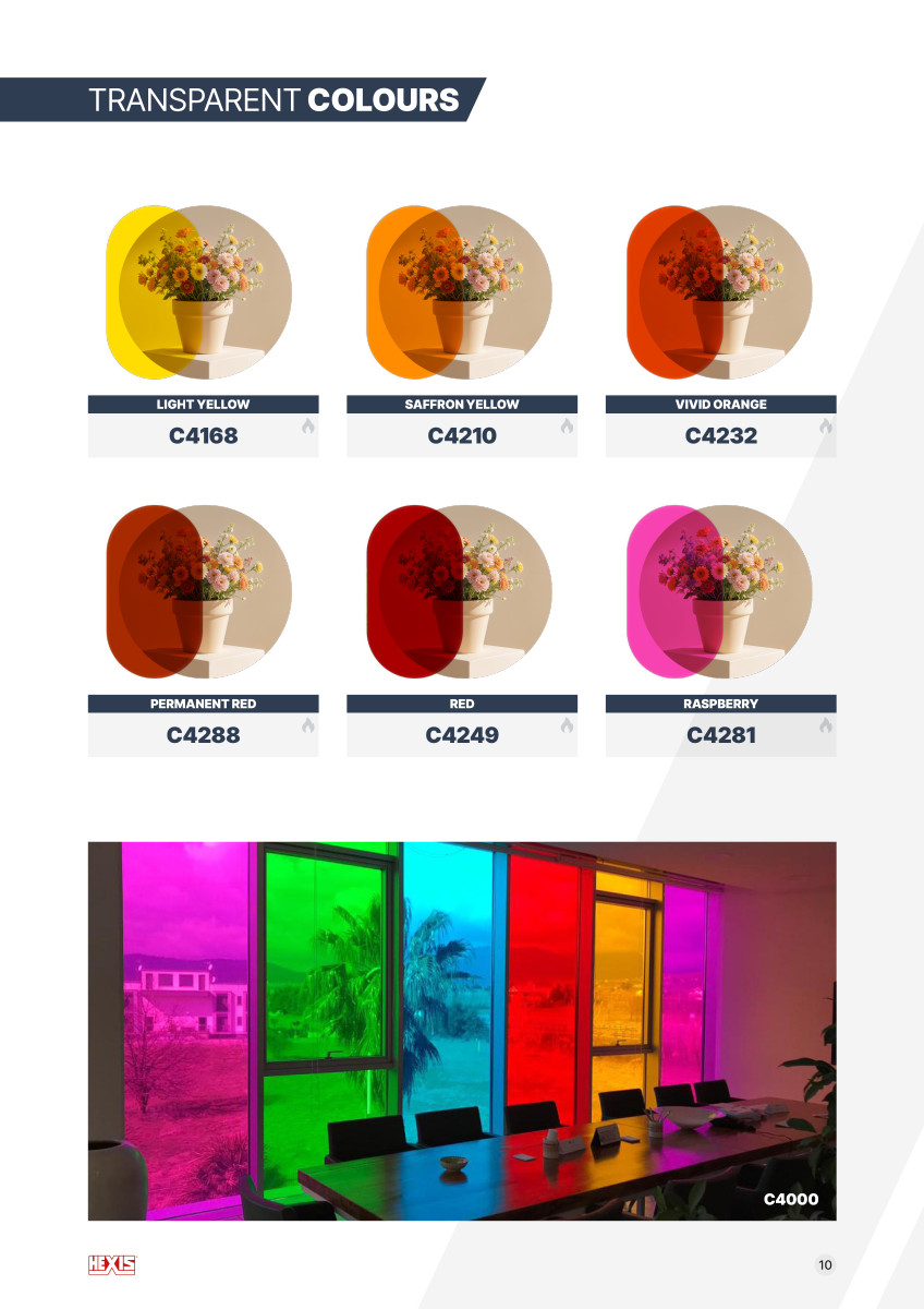HEXGLASS zahrnuje také transparentní barevné fólie, které: