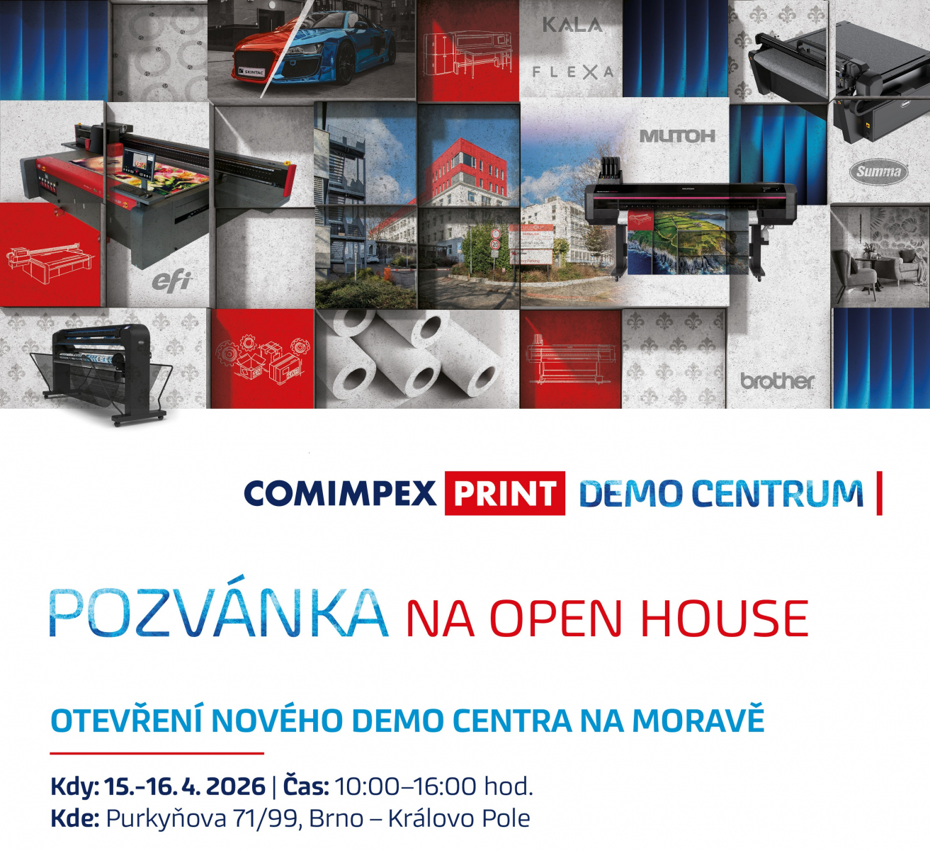 Srdečně vás zveme do Brna na slavnostní otevření našeho nového demo centra COMIMPEX PRINT.