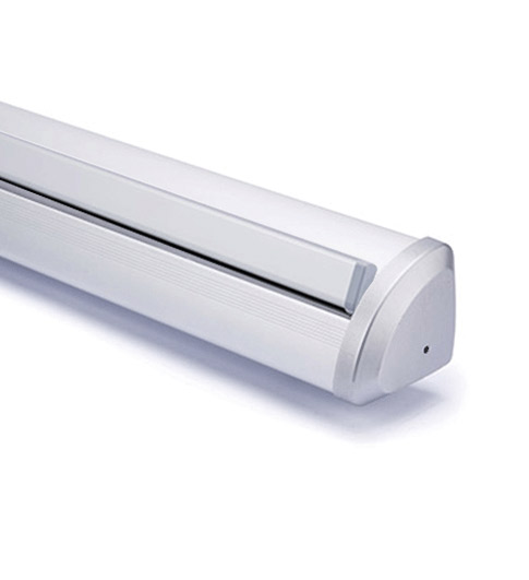 Roll up z eloxovaného hliníku a šedými plastovými bočnicemi pro středně dobé aktivní použití. Roll up má poloteleskopickou tyč, spodní nalepovací zavaděcí pásku, polstrovanou tašku. Baleno po 6 ks v hlavním kartonu.