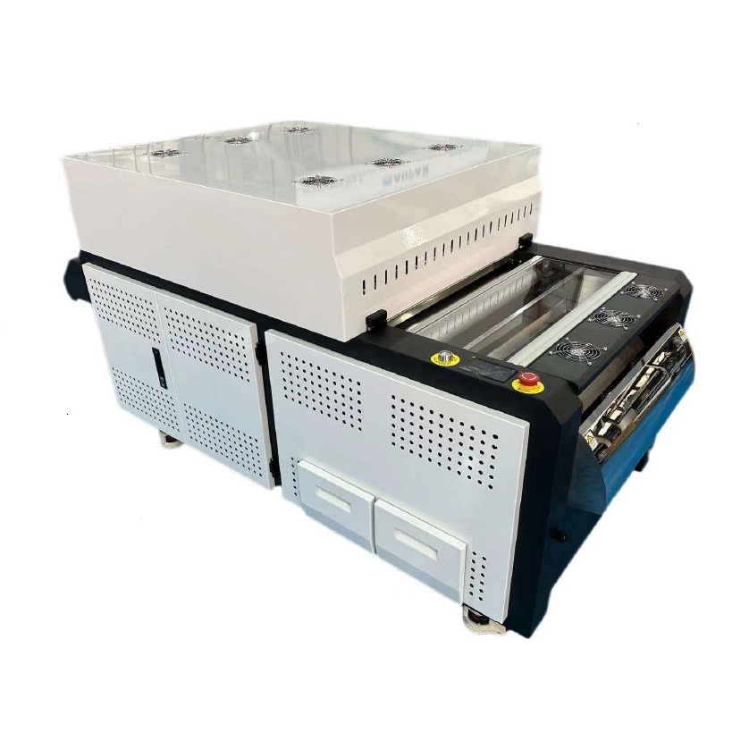 Motiv je po tisku okamžitě vytvrzen UV světlem a připraven k přenosu.
