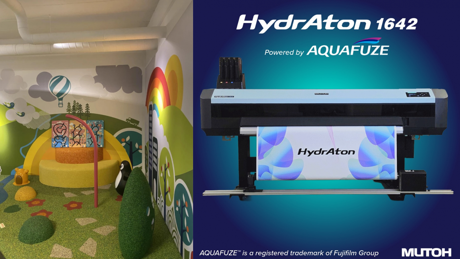Pro nás jako pro designéry a výrobce znamená potisk na MUTOH HydrAton technologii živou a detailní grafiku, která zvyšuje atraktivitu našich tematických herních zón. Pro naše zákazníky – včetně subjektů z leteckého průmyslu, například letišť, nebo lodní dopravy a terminálů výletních lodí s přísnými požadavky na soulad s předpisy – to znamená plně potisky bez PFAS látek, bezpečnou a bez obsahu PVC, která podporuje jejich cíle v oblasti udržitelnosti.
